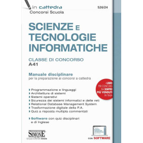 Il manuale è indirizzato a quanti vogliono affrontare le prove scritte e orali dei nuovi concorsi a cattedra. In particolare, il testo ripercorre per punti e snodi essenziali tutto il programma di esame della disciplina di insegnamento, relativa alla classe di concorso A41 (Scienze e tecnologie informatiche), al fine di permettere un rapido ripasso della materia. Il manuale Scienze e tecnologie informatiche si correda di una sezione con quiz a risposta multipla.In Appendice un breve approfondimento dei principali temi dell'Office automation spesso oggetto di prova anche nei profili informatici.Completano il manuale per il concorso scuola un software con quiz disciplinari e di inglese per affrontare la prova con test a risposta multipla, e numerose espansioni online tra cui le Linee guida relative alla materia d'insegnamento della citata classe A41, indispensabili per una corretta progettazione di lezioni e unita di apprendimento.