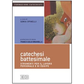 La catechesi battesimale sta assumendo un'importanza crescente nell'attuale contesto sociale e pastorale italiano, sia come strumento di responsabilizzazione dei genitori che scelgono il battesimo per i loro figli, sia come opportunità di prima evangelizzazione per i bambini in età prescolare. "Da questo punto di vista, non è indebito riconoscere nella pastorale battesimale un ambito prezioso di missionarietà della Chiesa italiana. Si può anche parlare di un campo di prima evangelizzazione, soprattutto se si intende la sigla "pastorale battesimale" nel senso di "cura pastorale per le prime età"" e per le giovani famiglie (dall'Introduzione). A fronte di questa rinnovata prospettiva, si ridisegna anche il ruolo del catechista battesimale: all'équipe battesimale viene chiesto "non solo di preparare i genitori, ma di avviare una relazione con loro; non solo di informarli sul senso del sacramento, ma di prepararne e gestirne la celebrazione; non solo di donar loro contenuti, ma di attivarne la soggettività in materia di fede". Tali compiti richiedono una formazione specifica, da realizzarsi. A ciò, appunto, è dedicato il volume, che nasce da una sperimentazione sul campo e da una collaborazione 'a più mani' e comprende una parte teologico-liturgica, una parte pastorale-catechetica e una parte pedagogico-didattica, da utilizzarsi complessivamente oppure anche separatamente l'una dall'altra.