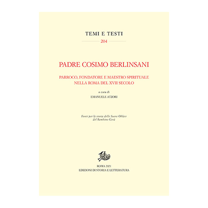 P. Cosimo Berlinsani (1619-1694), beatificato nel 2019, fu prima nominato parroco a S. Maria in Campitelli e fondò poi, con Anna Moroni, la Congregazione delle Oblate del Bambino Gesù. La documentazione raccolta dalla Commissione storica apre squarci inediti sulla biografia del Berlinsani, sulla gestione del suo istituto religioso e sul suo ruolo di maestro spirituale, contribuendo anche a gettare nuova luce sulla vita ecclesiastica nella Roma del Seicento.