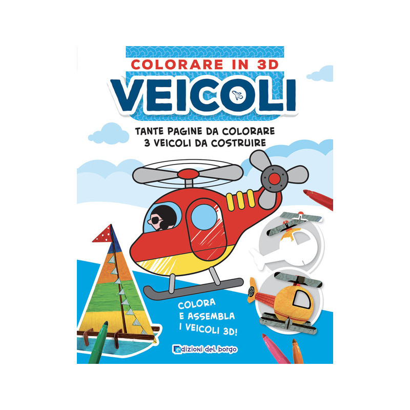 Albo da colorare di grande formato con il modello già colorato sulla pagina sinistra e il disegno da colorare sulla pagina destra. La particolarità dell'albo, però, è la presenza di tre pagine con le sagome in cartone spesso dei veicoli da staccare, colorare, assemblare e personalizzare. Un'idea originale e divertente con cui giocare a più non posso! Età di lettura: da 4 anni.