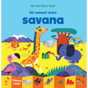 Riconosci gli abitanti della savana? Trova gli animali in ogni pagina di questo libro a fisarmonica! Età di lettura: da 1 anno.