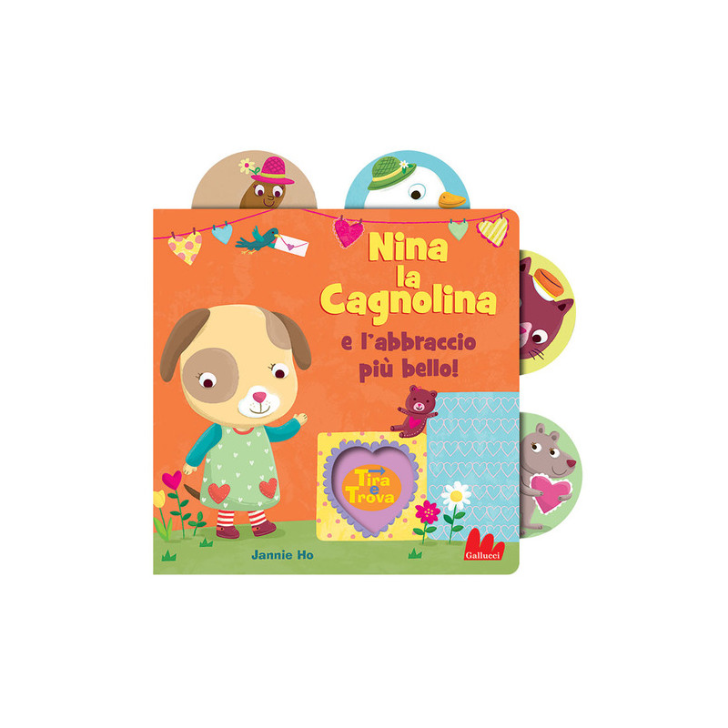 Nina la Cagnolina vuole un grande abbraccio. Chi glielo darà? Una nuova serie con tavole scorrevoli e resistenti, ognuna delle quali funziona anche come linguetta segnalibro e raffigura i simpatici amici dei cuccioli protagonisti. Età di lettura: da 1 anno.