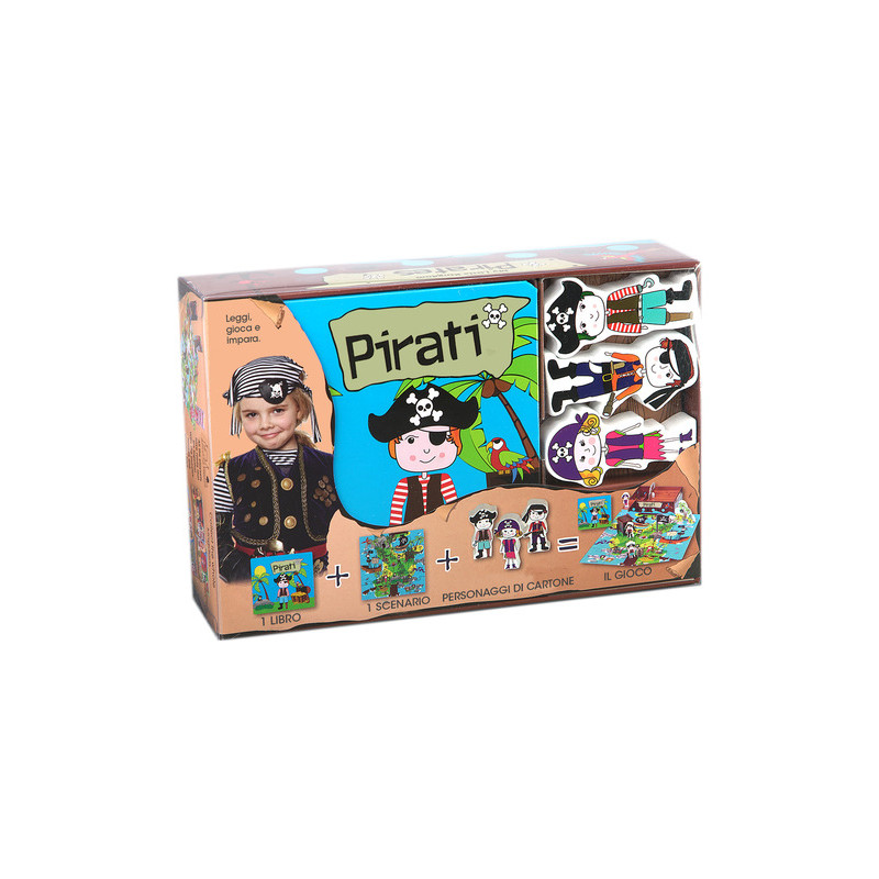 Yo oh oh! Una ciurma di pirati è alla ricerca di un tesoro. Leggi le loro eccitanti avventure e poi trasforma la scatola in una vera nave pirata e divertiti con i tre nuovi amici pirati alla ricerca del tesoro nello scenario incluso. Questa scatola include: Un libro illustrato, Tre personaggi in legno, Un puzzle di 16 grandi pezzi, Elementi in cartone. Età di lettura: da 3 anni.