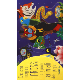 Un libro originale che insegna al bambino a osservare, manipolare, memorizzare e a sviluppare la sua curiosità. Gli animali sagomati e le immagini ricche di dettagli aiutano il bambino a migliorare il suo spirito di osservazione e a imparare le buffe abitudini alimentari degli animali della giungla. Età di lettura: 0-2 anni.