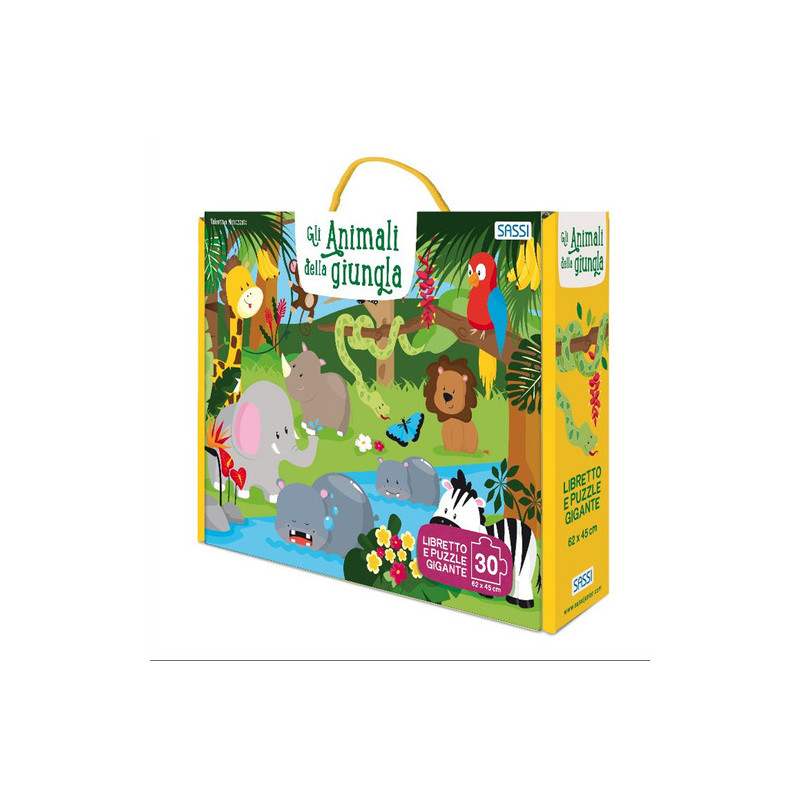 Scopri tutti i segreti della giungla e degli affascinanti animali che la abitano! Gli alberi sono enormi, le foreste impenetrabili, i colori vibranti. Siete pronti a intraprendere questa fantastica avventura nella natura selvaggia? Una valigetta contenente un maxi-puzzle da 30 pezzi e un grazioso libricino, che porteranno i bambini nel misterioso mondo della giungla. Età di lettura: da 3 anni.