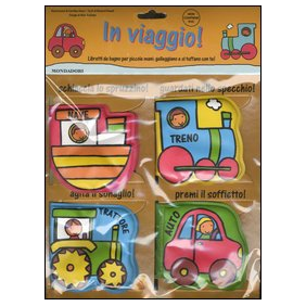 Quattro libretti che galleggiano e si tuffano in acqua con te: ciascuno di essi riproduce un mezzo di trasporto e insegna a compiere semplici azioni. Età di lettua: 6 mesi.