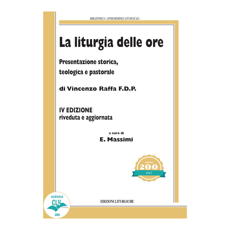 La pubblicazione di questa nuova edizione del testo di V. Raffa, aggiornata nella bibliografia e rivista secondo le ultime disposizioni magisteriali, rappresenta una opportunità per recuperare dimensioni importanti e potenzialità forse ancora poco conosciute dell'Ufficio divino rinnovato. Nessuno meglio dell'Autore conosce le istanze e le motivazioni che hanno portato all'attuale Liturgia delle Ore, la teologia, la funzione degli elementi di cui si compone, la spiritualità. Raffa offre ai lettori quell'approfondimento teologico necessario per aver accesso alla preghiera oraria della Chiesa e allo stesso tempo, seppur con "gli strumenti a sua disposizione", dimostra una grande attenzione per gli elementi rituali, il canto, la celebrazione della Liturgia delle Ore. [...] Ci auguriamo che la presente edizione aiuti a riscoprire la natura dell'Ufficio divino, la relazione strettissima che ha con i ritmi del giorno e della notte, con il sorgere e il tramontare del sole, l'importanza dei diversi modi di dire/proclamare/cantare i testi, delle posture che vengono via via assunte, dei ministeri, delle processioni, dell'orientamento, dei luoghi. Sono questi spazi, questi gesti, il canto, gli spostamenti, che permettono ai fedeli di riappropriarsi del tempo sacro, del tempo nel quale si compie l'evento della nostra salvezza, interrompendo così le logiche produttive e consumistiche che abitano il nostro vivere, per aprirci al dono di Dio. (Dalla Prefazione alla IV edizione)