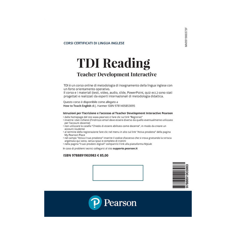 Teacher Development Interactive (TDI) è un corso online di metodologia di insegnamento della lingua inglese, con un forte orientamento operativo e il supporto di un tutor online. Ogni modulo, progettato e realizzato da esperti internazionali di metodologia didattica, consente di approfondire una specifica abilità indispensabile nell'insegnamento della lingua inglese. Essendo online, il corso è accessibile in qualsiasi momento e da qualsiasi device che sia collegato in Internet. Contiene materiali di lavoro di varia natura quali testi, video, audio, slide PowerPoint e quiz. Il corso TDI Reading è allegato al volume How to Teach English di Jeremy Harmer.