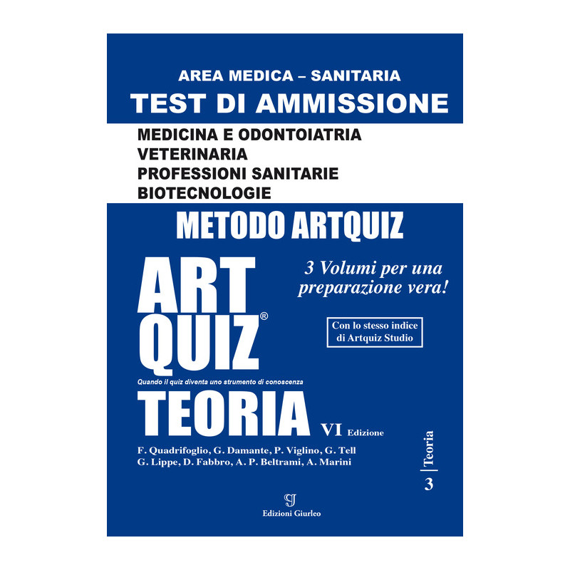 Manuale di teoria per i Test di ammissione alle Facoltà di Medicina, Odontoiatria e Veterinaria, per i Corsi di Laurea triennali dell'Area Sanitaria e per il Corso di Laurea in Biotecnologie. Autori Vari: Franco Quadrifoglio, Giuseppe Damante, Paolo Viglino, Tell Gianluca, Giovanna Lippe, Dora Fabbro, Paolo Antonio Beltrame, Alfio Marini.