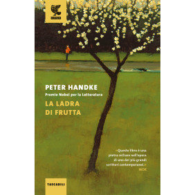 Ad aprire questo libro di Peter Handke, definito dall'autore stesso «Ultimo Epos», è una puntura d'ape, la prima dell'anno, che in una giornata di mezza estate rappresenta per lui un segnale. È il momento di lasciare la «baia di nessuno», la casa nei pressi di Parigi, per mettersi in cammino verso la regione quasi disabitata della Piccardia, ripercorrendo l'itinerario compiuto, in un passato non meglio definito, dalla ladra di frutta. La ragazza - un personaggio sfuggente, dai tratti leggendari - «afflitta dalla smania di vagare» e incline a scartare dalla strada maestra per «sgraffignare» e assaporare i frutti di orti e frutteti, è partita invece con un intento preciso: ritrovare la madre, scomparsa da circa un anno dopo aver lasciato senza preavviso il suo posto di dirigente in una banca. Il viaggio della ladra di frutta e quello del narratore finiscono per sovrapporsi, per confondersi, per specchiarsi l'uno nell'altro: una serie di peripezie, incontri, folgorazioni ispirate dal contatto con la natura, che culminano in una grande festa. E questa sarà un approdo e un ricongiungimento, ma anche l'occasione per celebrare il vagare, l'erranza fine a se stessa, tutte quelle deviazioni dal tracciato che regalano visuali e doni inaspettati, come i frutti presi di soppiatto dai frutteti altrui. Il «semplice viaggio nell'entroterra» è ricco di rivelazioni e scoperte, e diventa, o forse è sempre stato, anche un percorso interiore.