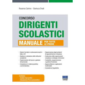 Il manuale ha lo scopo di fornire un'ottima preparazione a coloro che si apprestano ad affrontare il complesso e impegnativo iter del Concorso per dirigenti scolastici. Il testo è strutturato sulla base della bibliografia contenuta nei Quadri di riferimento concorsuali e della più recente legislazione scolastica con particolare riferimento alle riforme in atto (esami di stato, sostegno, istituti professionali), al fine di approfondire gli argomenti relativi a tutte le fasi concorsuali. Le tematiche affrontate sono: sistemi formativi e ordinamenti degli studi in Italia e nei Paesi dell'Unione Europea; gestione e valutazione delle istituzioni scolastiche (PTOF, RAV, PdM); organizzazione e responsabilità del personale scolastico, funzioni e competenze del dirigente scolastico; sicurezza sul lavoro, accesso agli atti e tutela della privacy; organizzazione degli ambienti di apprendimento, valutazione e uso dei nuovi linguaggi multimediali; inclusione scolastica; relazioni e comunicazioni nell'istituzione scolastica e gestione delle problematiche; conduzione delle organizzazioni complesse e strategie di direzione; uso di apparecchiature e applicazioni multimediali; competenze linguistiche. Tutti gli argomenti prevedono una specifica trattazione delle competenze e del ruolo del dirigente scolastico. Il testo affronta i temi connessi alla conoscenza e alle competenze del dirigente scolastico previste dalla vigente normativa con riferimento ai mutati contesti della dirigenza pubblica a seguito della riforma Madia. L'ultima parte contiene: l'analisi di un caso per far esercitare le abilità di problem solving in relazione alle situazioni concrete; - alcune simulazioni per la prova preselettiva. Nella sezione online collegata al libro sono previsti eventuali aggiornamenti normativi.