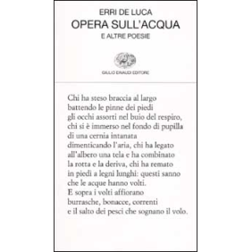 "Per chi scrive storie all'asciutto della prosa - scrive Erri De Luca l'azzardo dei versi è il mare aperto... è che a cinquant'anni un uomo sente di doversi staccare dalla terraferma e andarsene al largo." L'acqua è l'elemento che domina, visivamente e allegoricamente, la prima metà del libro, ponendo le premesse per la più tellurica consistenza della seconda. Un'acqua che si presenta innanzitutto come elemento primordiale.