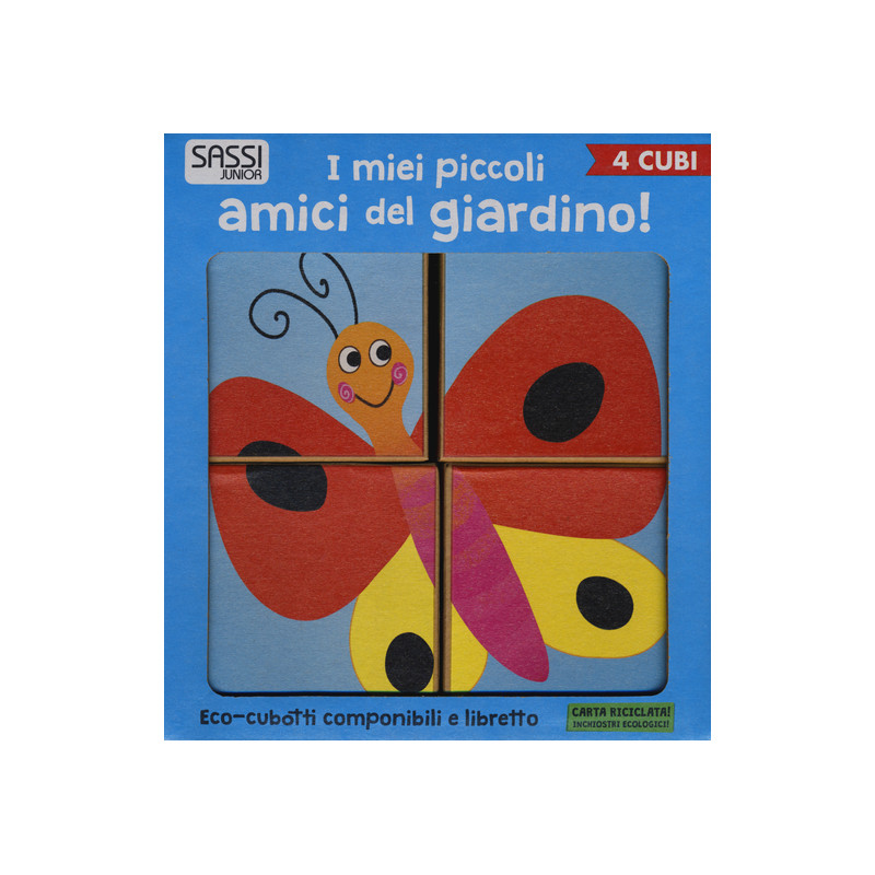 Impara a conoscere i piccoli abitanti del giardino! Componi gli eco-cubotti e scopri quanto sono graziosi la lumaca, la ranocchia, il topolino, la coccinella, la farfalla e la tartaruga! Sei divertenti immagini che ti faranno scoprire i piccoli abitanti del giardino! Leggi il libretto con le loro storie, impara le abitudini, le differenze e i segreti di questi simpatici animaletti! Età di lettura: da 2 anni.