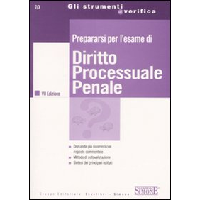 Dieci questionari ampiamente commentati e corredati di schede riepilogative e comparative su: i soggetti e gli atti del processo penale, le prove, le misure cautelari, le indagini preliminari e l'udienza preliminare, i procedimenti speciali, iI dibattimento, il procedimento monocratico, il procedimento innanzi al giudice di pace, il procedimento minorile, le impugnazioni, l'esecuzione penale, l'estradizione e i rapporti internazionali.