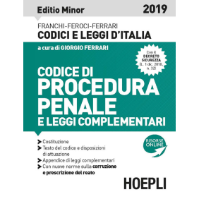 Con le più recenti pronunce della Corte Costituzionale e i principali nuovi provvedimenti di cui si è tenuto conto: L. 9 gen. 2019, n. 3: Misure per il contrasto dei reati contro la pubblica amministrazione, nonché in materia di prescrizione del reato e in materia di trasparenza dei partiti politici; L. 30 dic. 2018, n. 145: Legge di stabilità 2019; L. 1 dic. 2018, n. 132: Conversione del D.L. 4 ott. 2018, n. 113, recante disposizioni in materia di protezione internazionale, immigrazione, sicurezza pubblica e destinazione dei beni sequestrati e confiscati alla criminalità; D.lgs. 2 ott. 2018, n. 121: Disciplina dell'esecuzione delle pene nei confronti dei condannati minorenni in attuazione della delega di cui alla "legge Orlando" (L.103/2017).