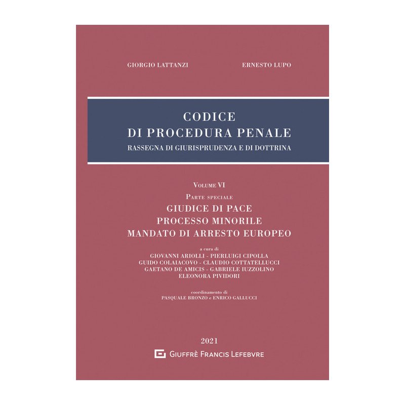 La nuova edizione del Codice di procedura penale. Rassegna di giurisprudenza e di dottrina, si presenta in una veste più agile, in sei volumi, e al contempo rinnovata nei contenuti, per coniugare l'elevato spessore della trattazione con una vocazione pratica, grazie alla consolidata autorevolezza dei direttori, Giorgio Lattanzi ed Ernesto Lupo, nonché degli autori, scelti tra esperti magistrati, accademici e avvocati. L'Oopera offre un quadro completo della disciplina processuale puntualmente aggiornato e integrato sotto il profilo giurisprudenziale e dottrinale, con un'attenzione mirata alle questioni più attuali, lette alla luce dei copiosi interventi legislativi degli ultimi anni e alle più recenti novità che, spesso, hanno modificato in profondità istituti processuali di grande importanza anche per la pratica giudiziaria. Interventi di novellazione su istituti non secondari sono stati apportati anche dai decreti-legge emanati per far fronte all'emergenza sanitaria da Covid-19, di cui si dà conto inquadrandoli nella trama processuale. Per ogni articolo del Codice viene proposta una lettura ragionata e sistematica, attraverso una disamina che mette in evidenza eventuali contrasti giurisprudenziali e dottrinali al fine di interpretare in modo chiaro le nuove disposizioni e approfondire quelle che sono rimaste immutate. Il presente volume VI, Parte speciale, si pone a corredo dei volumi dedicati al Codice, approfondendo tre discipline fondamentali: Giudice di pace, Processo minorile e Mandato di arresto europeo. In tale volume le norme complementari trattate sono puntualmente correlate nel commento con le disposizioni del codice contenute nei volumi precedenti. La disciplina del Mandato di arresto europeo è aggiornata alla Riforma di cui al D.lg. n. 10/2021, nell'ottica di un compiuto adeguamento alla Decisione quadro 2002/584/GAI. Gli interventi innovativi della Riforma e le relative ricadute sono quindi approfonditi con peculiare attenzione al rapporto con la disciplina europea, al confronto con la formulazione previgente e all'inquadramento sistematico degli orientamenti già emersi in giurisprudenza.