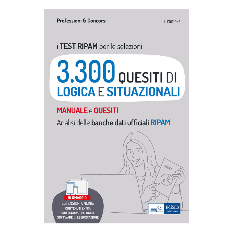 Volume destinato ai partecipanti alle prove selettive dei concorsi gestiti attraverso le procedure RIPAM/Formez. La prova scritta di tali concorsi consiste in un questionario a risposta multipla, che comprende anche quesiti di logica e test situazionali. Questo manuale, formato da una parte manualistica cui seguono circa 3.300 quesiti a risposta multipla, consente un'efficace preparazione a tale fase. Il volume raccoglie, risolve e commenta quesiti di logica, scelti fra quelli più rappresentativi delle banche dati ufficiali RIPAM. Per ciascuna tipologia, il testo spiega le tecniche di risoluzione e suggerisce trucchi e consigli per superare la prova. Il volume espone anche altre tipologie di test di logica che potrebbero essere oggetto della prova. Il manuale analizza, inoltre, esempi di test situazionali, la cui risoluzione è richiesta nelle prove di diversi concorsi gestiti negli ultimi anni con le procedure RIPAM/Formez. Al termine del volume, sei batterie di test permettono di esercitarsi in vista della prova di selezione. Il manuale è arricchito da numerosi contenuti extra e materiali didattici online: ulteriori questionari; il software di simulazione.