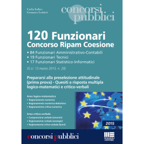 Il volume è una guida per affrontare la preparazione alla prova preselettiva prevista dal concorso Ripam per il reclutamento di 120 unità di personale di ruolo di categoria A-F1 o area III-F1, presso diverse Amministrazioni. Nello specifico si prevede l'assunzione di 84 Funzionari Amministrativo-Contabili (Codice AG8/FSE), 19 Funzionari tecnici (Codice TC8/FSE), 17 Funzionari Statistico-Informatici (Codice SI8/FSE). Il concorso è stato bandito con avviso pubblicato sulla Gazzetta Ufficiale del 13 marzo 2015, n. 20. Il bando prevede una prima prova preselettiva consistente in una serie di quesiti a risposta multipla di carattere logico-matematico e critico-verbale. Questo volume è stato elaborato specificamente per affrontare al meglio tale prova, raccogliendo numerosi questionari che tengono conto delle diverse tipologie di quesiti disponibili nella banca dati gestita dal Ripam. Il testo è preceduto da una guida nella quale sono indicate le specifiche tecniche di risoluzione delle tipologie di quesiti. In questo modo il candidato può affrontare con sicurezza tutte le domande d'esame e non semplicemente tentare di memorizzare ogni singolo quesito presente nella banca dati di riferimento.