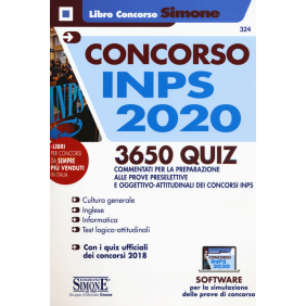 Concorsi INPS 2020. 3650 Quiz è un eserciziario per la preparazione alle prove preselettive e oggettivo-attitudinali dei concorsi INPS per il 2020, basato sui programmi d'esame e su circa 800 quesiti ufficiali dei precedenti concorsi del 2018 (365 Analisti di processo e 967 Consulenti protezione sociale), le cui varie tipologie hanno costituito il modello per l'elaborazione di tutti gli altri item riportati nel testo. Pertanto, gli oltre 3650 quiz contenuti nel volume, tutti a risposta multipla e opportunamente corredati di soluzioni commentate, riguardano: cultura generale; inglese; informatica; test logico-attitudinali; prove ufficiali dei concorsi precedenti. A completamento dell'opera, un software (accessibile tramite QR-Code) con tutti i quiz contenuti nel volume, per infinite esercitazioni e simulazioni della prova concorsuale.
