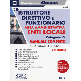 Il manuale, giunto alla XXI edizione, è strutturato in modo da soddisfare le esigenze di quanti affrontano i concorsi banditi dagli enti locali per i profili professionali di Istruttore Direttivo e di Funzionario nell'area amministrativa. Oltre alle materie istituzionali, tradizionalmente oggetto delle prove d'esame, il volume si sofferma su alcuni aspetti specialistici fra cui si segnalano: disciplina giuridica del personale nell'ente locale; ordinamento finanziario e contabile dell'ente locale; disciplina dei contratti pubblici; procedimento amministrativo; informatizzazione della pubblica amministrazione; diritto di accesso ai documenti amministrativi e tutela della privacy; trasparenza e anticorruzione; servizi demografici; sportello unico per le attività produttive; commercio; urbanistica ed edilizia; tutela paesaggistica; protezione della natura e tutela dall'inquinamento; servizi alla persona e alla comunità. Di particolare evidenza è la parte dedicata alla redazione degli atti amministrativi dell'ente locale contenente anche una rassegna di modelli di atti degli organi di governo e gestionali che consente agli utenti di calarsi nella realtà operativa della pubblica amministrazione locale ed acquisire più familiarità con il tipo di prova concorsuale che sono chiamati ad affrontare. Il testo è aggiornato al decreto semplificazioni (D.L. 135/2018, conv. in L. 12/2019), alla legge di bilancio 2019 (L. 145/2018) e al decreto sicurezza (D.L. 113/2018, conv. in L. 132/2018). Indice delle discipline. Attività amministrativa dell'ente locale: procedimento e tutela della privacy. Diritto costituzionale. Trasparenza e anticorruzione nelle P.A.. Diritto dell'Unione europea. Atti amministrativi dell'ente locale. Diritto amministrativo. Legislazione in materia di contratti pubblici. Diritto regionale. Servizi comunali di competenza statale. Ordinamento istituzionale degli enti locali. Settori organici di intervento locale. Organizzazione e disciplina giuridica del personale negli enti locali. Elementi di diritto civile. Ordinamento finanziario-contabile degli enti locali. Reati contro la P.A.