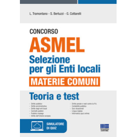 Il volume si presenta come utile strumento di preparazione alla selezione indetta dall'Asmel (Associazione per la sussidiarietà e la modernizzazione degli enti locali). La procedura di selezione servirà a formare una graduatoria di idonei da assumere a tempo determinato e indeterminato presso gli Enti locali aderenti, per i diversi profili. I profili richiesti sono i seguenti: Istruttore e Istruttore Direttivo Amministrativo (Cat. C e D); Istruttore e Istruttore Direttivo Amministrativo-Contabile (Cat. C e D); Istruttore Direttivo Contabile (Cat. D); Istruttore e Istruttore Direttivo Tecnico (Cat. C e D); Istruttore e Istruttore Direttivo di Vigilanza (Cat. D); Istruttore e Istruttore Direttivo Informatico (Cat. C e D); Istruttore Direttivo Assistente Sociale (Cat. D); Istruttore Direttivo Agronomo (Cat. D); Esperto rendicontazione (Cat. D); Educatore Asilo Nido (Cat. C). La selezione consisterà in un test di domande a risposta multipla sulle materie comuni e specifiche per ogni profilo. Il testo presenta una trattazione chiara e completa su tutte le materie comuni a tutti i profili, ovvero: Diritto pubblico; Diritto amministrativo; Trasparenza, anticorruzione e Privacy; Diritto degli enti locali; Contratti pubblici; Pubblico impiego; Diritto dell'Unione europea; Diritto penale e reati contro la P.A.; Contabilità pubblica; Quiz situazionali. Nella sezione online collegata, raggiungibile seguendo le istruzioni riportate in fondo al libro, sono disponibili anche: quiz di lingua inglese; teoria e quiz di informatica; simulatore di quiz sulle materie comuni, per allenarsi in vista della prova.
