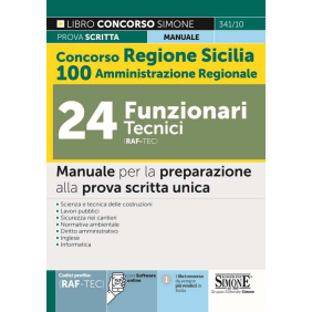 Il manuale Concorso Regione Sicilia 100 posti Amministrazione Regionale - 24 Funzionari tecnici (cod. RAF/TEC) è diretto alla preparazione della prova scritta unica prevista dal bando di concorso, pubblicato nella G.U. della Regione Siciliana del 29-12-2021, n. 18. La prova scritta consiste nella risoluzione di 60 quesiti a risposta multipla. Il testo, seguendo il programma del bando, tratta le seguenti discipline: Parte I - Scienza e Tecnica delle Costruzioni; Parte II - Gestione del territorio e normativa in materia di urbanistica e di edilizia; Parte III - Normativa in materia ambientale: gestione dei rifiuti, bonifica dei siti inquinati, tutela dell'aria e riduzione delle emissioni in atmosfera; Parte IV - Diritto amministrativo, con esclusivo riferimento al Codice dei contratti pubblici (D.Lgs. 50/2016) e normativa in materia di lavori pubblici; Parte V - Normativa in materia di salute e sicurezza nei cantieri e nei luoghi di lavoro; Parte VI - Lingua inglese e Tecnologie informatiche (quiz commentati). Il libro si completa con le seguenti risorse online: espansioni di approfondimento e normative; un software con i quiz a risposta multipla su tutte le materie oggetto della prova d'esame.