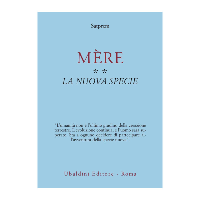 Il primo volume della trilogia di Satprem su Mère, Il materialismo divino, descrive il cammino di Mirra Alfassa (Parigi, 21 febbraio 1878): dalla frequentazione della musica e della pittura (è amica di tutti i grandi impressionisti, da Renoir a Manet, da Rodin a Cézanne) alla passione per la matematica e per le scienze (sono i tempi delle equazioni quantiche di Max Planck, della scoperta di Einstein dell'equivalenza tra energia e materia), dallo studio delle filosofie delle religioni a quello dell'occultismo, dai soggiorni in Algeria agli anni trascorsi in Giappone, fino all'incontro con Sri Aurobindo nel 1914 e alla scelta definitiva, nel 1920, di lavorare accanto a lui, a Pondichéry. Ma un altro 'viaggio' si andava nel frattempo compiendo: quello che essa conduceva all'interno di sé. Non in mistiche spiritualità, bensì proprio all'interno del corpo, nella Materia, fino in fondo alle cellule, alla ricerca di quel 'terribile nodo' della vita con la morte. Nel 1950, Sri Aurobindo passa 'dall'altra parte' e Mère, a 73 anni, resta sola davanti al 'Problema da risolvere', come lei lo chiamava: quello, appunto, della morte. La nuova specie comincia qui. Queste pagine sono il partecipe resoconto dell'avventura di Mère, singolare testimone, o - se si vuole - prototipo evolutivo, della trasformazione della specie Homo sapiens in qualcosa d'altro e di diverso dell'uomo.