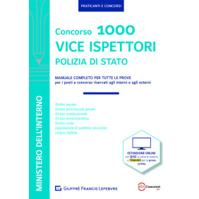 Nella G.U. 29 dicembre 2020 n. 100 è stato pubblicato il bando del concorso per 1000 allievi Vice ispettori della Polizia di Stato. Giuffrè Francis Lefebvre ti accompagna nella preparazione con la nuova collana dedicata ai Concorsi: contenuti d¿autore, messi a punto da esperti nella formazione per esami e concorsi. Nel manuale sono trattate, con un linguaggio chiaro ed immediato, le materie oggetto di tutte le prove previste nel bando (preselettiva, scritta e orale). l contenuti del volume sono validi anche per i concorsi interni riservati al personale già appartenente alla Polizia di Stato. I moduli delle varie materie sono composti da una parte teorica, semplice e completa, arricchita da fraseologia, dizionario giuridico, domande e risposte e schemi riepilogativi. In aggiunta, l¿estensione online con QUIZ a risposta multipla, indispensabili per un ripasso delle materie e per testare la preparazione, e una raccolta di temi per affrontare la prova scritta.