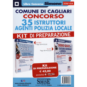 Il Comune di Cagliari ha bandito un Concorso per 35 istruttori agenti polizia locale. Il Kit di preparazione comprende: "Il Vigile Urbano. Quiz per i concorsi nella Polizia Locale Municipale e Provinciale" e "2000 quiz di cultura generale e logica per tutti i concorsi".