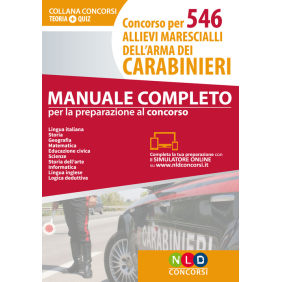 Il "Manuale completo per la preparazione al Concorso per 546 Allievi Marescialli" è strutturato in modo da soddisfare le esigenze di quanti affrontano il concorso per Allievi Marescialli dell'Arma dei Carabinieri. Il volume si compone di una parte teorica, che riassume in maniera chiara e esaustiva tutte le materie previste dal bando di concorso, consentendo un rapido ed efficace apprendimento. Le discipline trattate sono: Lingua italiana; Storia; Geografia; Matematica; Educazione civica; Scienze; Storia dell'arte; Informatica; Lingua inglese; Logica deduttiva; Completa il volume una parte, alla fine di ogni materia, dedicata alle batterie di domande a risposta multipla che prevedono quattro opzioni di soluzione fra le quali viene indicata la risposta corretta. Inoltre, nella appendice on line è possibile esercitarsi con il simulatore della prova.