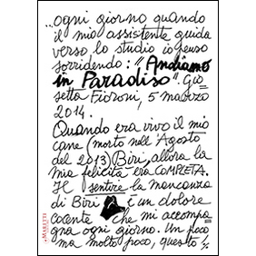 Giosetta Fioroni nasce a Roma nel 1932. Si iscrive all'Accademia di Belle Arti, dove segue le lezioni di Toti Scialoja. Dal 1958 vive a Parigi e nel 1963 ha la sua prima personale alla galleria Denise Breteau. Tornata a Roma, Giosetta è l'unica presenza femminile nel gruppo della Scuola di Piazza del Popolo, accanto a Franco Angeli, Mario Schifano, Tano Festa, Francesco Lo Savio, Giuseppe Uncini, Fabio Mauri. Fin da subito inizia a collaborare con poeti e scrittori. Fondamentali nella sua vita il rapporto con lo scrittore Goffredo Parise, la collaborazione con il fotografo Marco Delogu, il lavoro con il ceramista Gatti di Faenza, il suo amore per la Pop-Art e la sua passione per i cani. Proprio al ricordo dell'amico a quattro zampe "Biri", Giosetta dedica la copertina di questo volume della collana "Scritti d'artista". L'"andare in Paradiso" è per l'artista recarsi quotidianamente nel suo atelier, tra idee, sogni, progetti, ricordi. Un ensamble di emozioni che pervade tutte le pagine di questo libro dove vengono raccolti i momenti più significativi e le esperienze della vita di Giosetta, sia per mano della stessa Fioroni che di nomi illustri del giornalismo e della letteratura.