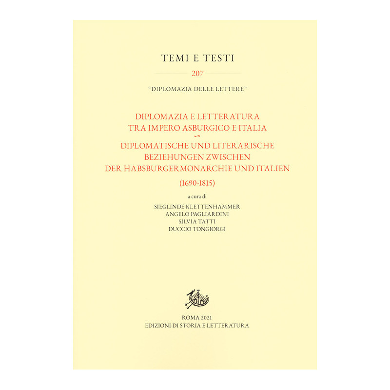 Il volume, considera i rapporti tra i diversi stati italiani e l'Impero Asburgico nel corso del lungo Settecento (1690-1815) dalla prospettiva delle strette relazioni esistenti tra mondo diplomatico e produzione letteraria. La rete di connessioni che si crea tra le rappresentanze diplomatiche e gli uomini di lettere promuove un'attività culturale intensa, all'origine di edizioni, traduzioni, scambi, conversazioni, spettacoli teatrali e melodrammatici, carteggi. Il volume, che si muove tra storia e letteratura, si ricollega a studi analoghi relativi al ruolo della diplomazia delle lettere nei rapporti tra Italia, Regno Unito e Francia e tra Roma e l'Europa. Il contributo dell'Impero asburgico alla definizione di una rete intellettuale europea è di assoluto rilievo, come emerge dai saggi presenti nel libro, che, nell'intreccio tra politica e letteratura, ricostruiscono la presenza a Vienna di moltissimi letterati provenienti dalla penisola ma anche da altri stati europei e seguono il percorso di diplomatici, ambasciatori, mediatori culturali che svolgono funzioni di coordinamento, mecenatismo, patronage nei confronti dei letterati.