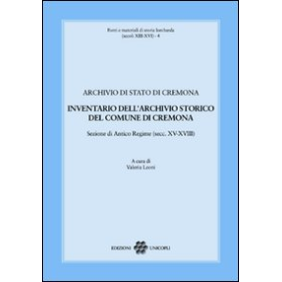 L'inventario riporta il dettaglio della consistenza dell'Archivio civico della città di Cremona, costituendo un prezioso strumento per la ricostruzione dell'operato delle realtà istituzionali in rapporto con la società locale; la descrizione analitica delle unità archivistiche è completata dall'indice onomastico e toponomastico.