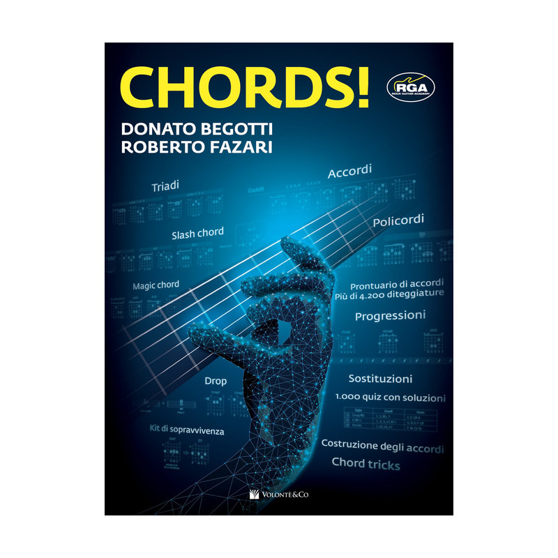 Un nuovo testo dedicato agli accordi. Rivolto a tutti i chitarristi. Per conoscere gli accordi più utilizzati in qualsiasi genere musicale, ricavando autonomamente le diteggiature di qualsiasi accordo, anche con sonorità "inusuale/fresca" in ogni zona del manico. Composto da due veri e propri libri: Teoria & Armonia. Nozioni fondamentali, Costruzione degli accordi, Chord tricks e Kit di sopravvivenza per ricavare autonomamente qualsiasi accordo; Prontuario di accordi. Più di 4.200 diteggiature, in ogni parte del manico riguardanti:Triadi Accordi, Slash chord, Policordi Magic chord. Inoltre, più di cento progressioni "II-V-I" e "tipo canzone" per mettere in pratica le nozioni apprese. Fra i contenuti: Intervalli e tonalità (in forma teorica e pratica), Costruzione e descrizione degli accordi, Rivolti e Drop 2, 3, 2 e 4... e per verificare le proprie conoscenze, più di 1.000 domande, con relative risposte a fine libro.