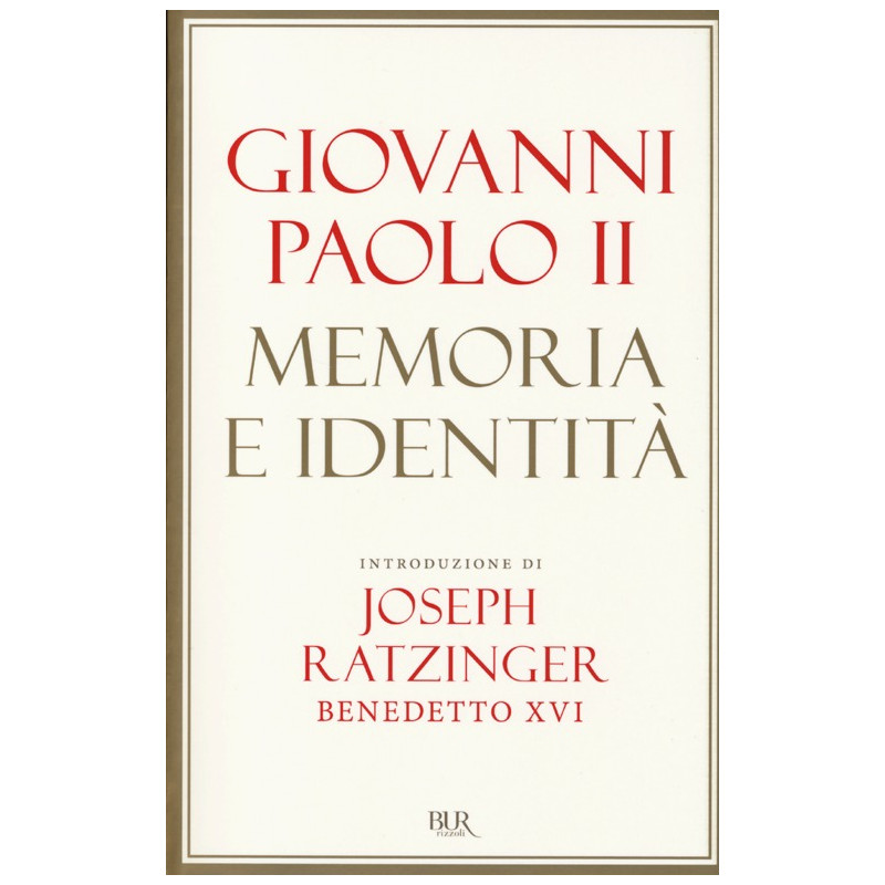 Memoria e identità è la grande meditazione a cui Papa Giovanni Paolo II ha affidato il suo estremo messaggio all'umanità. È una riflessione sulla storia e sul mistero del male, incarnato nei grandi sistemi totalitari del Novecento come il nazismo e il comunismo che hanno prodotto l'Olocausto, i gulag, gli stermini di massa. È la testimonianza autobiografica di un uomo che ha lottato e sconfitto quel male. È un'indagine sui fondamenti etici della democrazia e dei diritti umani, sull'identità dell'Europa, potentemente plasmata dal cristianesimo fino alla frattura provocata dall'illuminismo, sulla missione della Chiesa, che custodisce in sé la memoria della storia umana. Introduzione di papa Benedetto XVI.