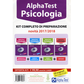 Questo kit una soluzione ai test 2017/2018 per prepararti alle prove di ammissione Psicologia e a tutti i corsi di laurea dell'area. Offre infatti materiale di studio e di esercitazione su tutti gli argomenti oggetto d'esame: capacità logiche e di ragionamento, cultura generale, conoscenze scientifiche, comprensione di testi, conoscenze linguistiche e socio-economiche. Il kit comprende: il manuale, con la teoria essenziale e mirata per studiare o ripassare ogni argomento richiesto al test; un eserciziario con centinaia di domande commentate suddivise per materia per mettersi alla prova e chiarire ogni dubbio; le prove di verifica per simulare l'esame ufficiale; una raccolta di migliaia di domande ufficiali suddivise per materia con tutte le soluzioni. Il software di simulazione Alpha Test permette di svolgere infinite prove simulate a test secondo le modalità dell'esame ufficiale, attingendo sia dai quesiti commentati dell'eserciziario sia dal ricco archivio della raccolta di quiz. I risultati sono immediatamente disponibili e vengono presentati anche in forma grafica. Richiede Windows XP, Vista, 7, 8, 8.1 o 10 oppure Mac OSX 10.4 (o superiori). RAM minima: 1GB.