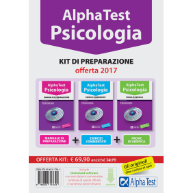Questo kit è una soluzione completa e aggiornata ai test 2017 per prepararti alle prove di ammissione a tutti i corsi di Psicologia. Offre infatti materiale di studio e di esercitazione su tutti gli argomenti oggetto d'esame: capacità logiche e di ragionamento, cultura generale, conoscenze scientifiche, comprensione di testi, conoscenze linguistiche e socio-economiche. Il kit comprende: il manuale, con la teoria essenziale e mirata per studiare o ripassare ogni argomento richiesto al test; un eserciziario con centinaia di domande commentate suddivise per materia per mettersi alla prova e chiarire ogni dubbio; le prove di verifica per simulare l'esame ufficiale. Il software di simulazione Alpha Test permette di svolgere infinite prove simulate a test secondo le modalità dell'esame ufficiale, attingendo dai quesiti commentati dell'eserciziario. I risultati sono immediatamente disponibili e vengono presentati anche in forma grafica. Richiede Windows XP, Vista, 7, 8, 8.1 o 10 oppure Mac OSX 10.4 (o superiori). RAM minima: 1GB.